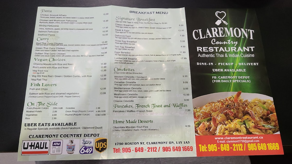 Claremont Country Depot/Restaurant (Thai, Indian, Pizza etc) Menu (2025 Update)